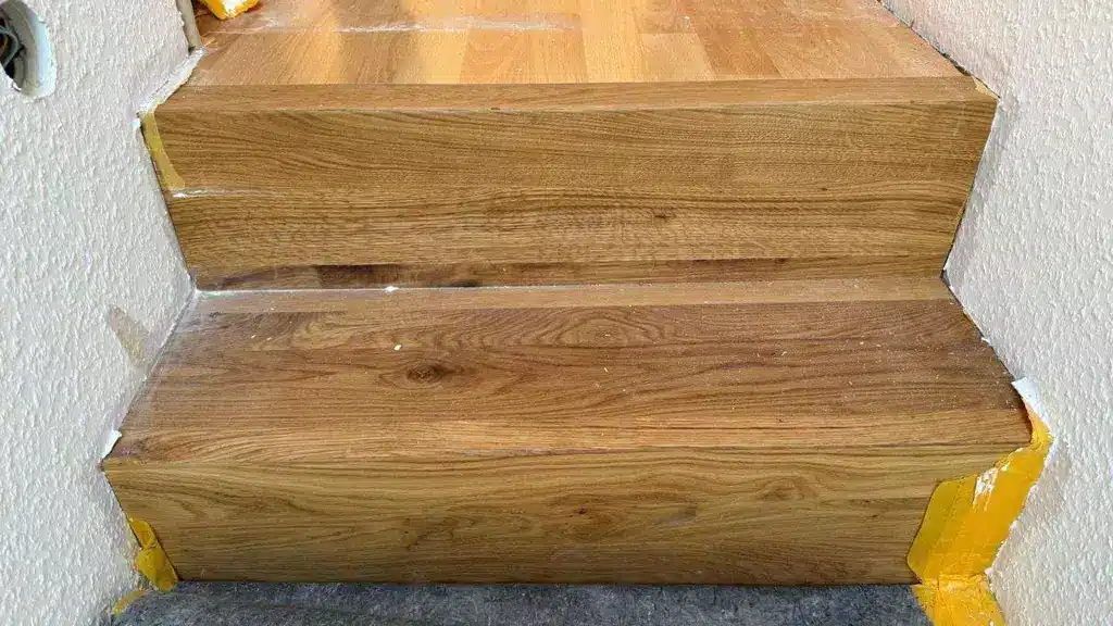 Hochwertiger Vinylboden in Eichenoptik mit Berliner Wandleisten in Weiß.